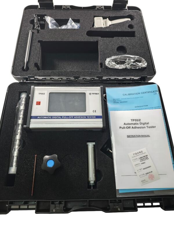 TP55 Digitale Abzieh-Adhäsionsprüfungist ein tragbares, handbetriebenes Instrument, mit dem die Kraft gemessen wird, die erforderlich ist, um einen bestimmten Prüfdurchmesser einer Beschichtung unter hydraulischem Druck vom Untergrund abzuziehen.Der Druck wird auf einem digitalen LCD angezeigt und stellt die Haftfestigkeit der Beschichtung auf das Substrat dar..